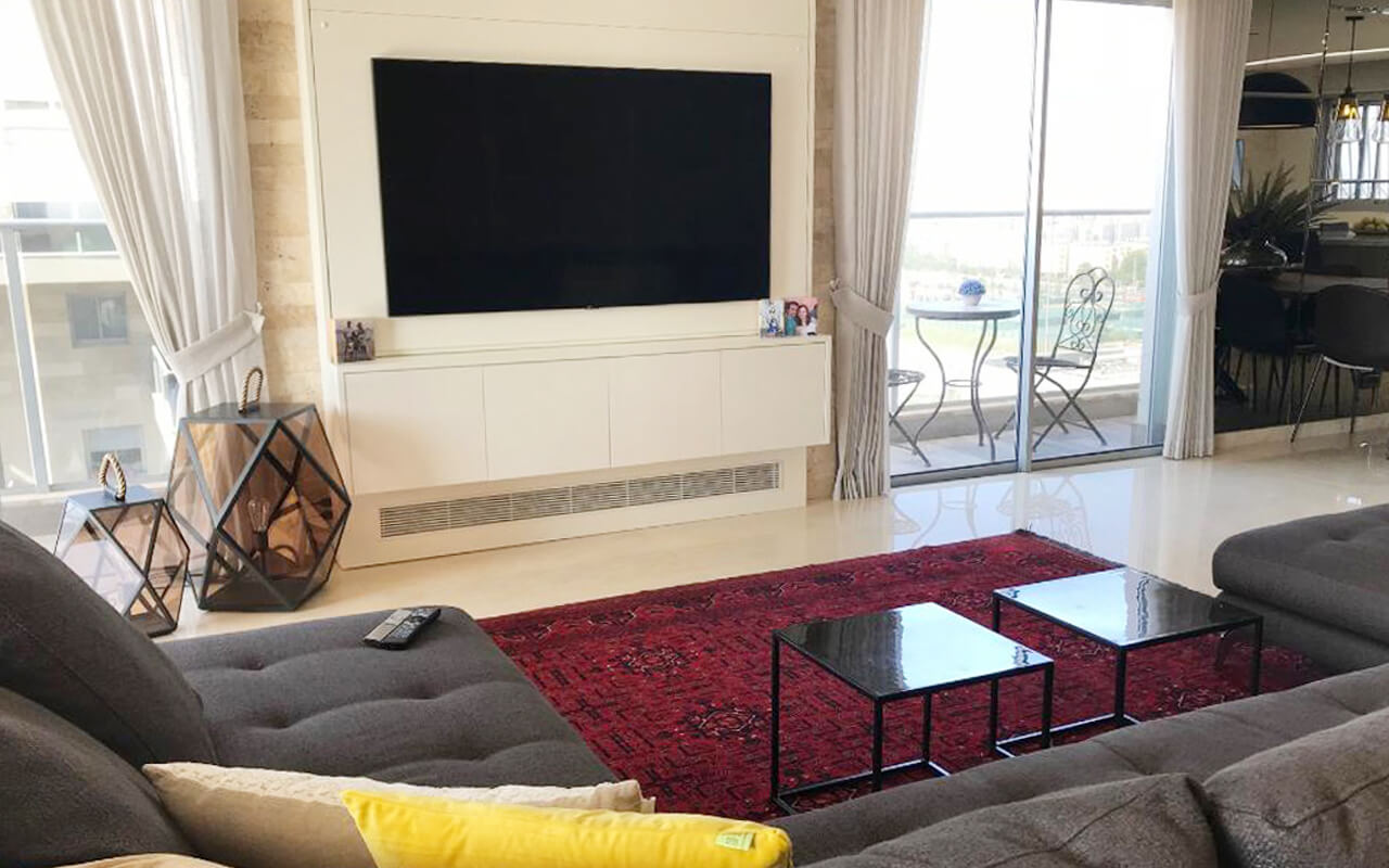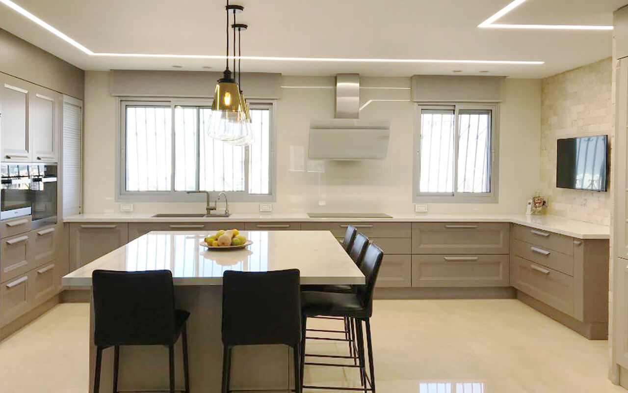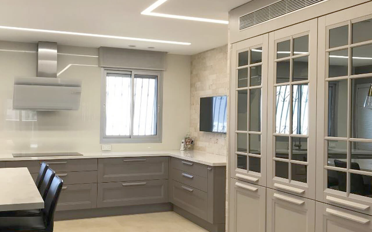 Салон достаточно большой, и у нас была возможность поместить огромный диван и положить в центр большой восточный ковер, он как элемент тепла и уюта всегда поддерживает атмосферу душевных встреч. Салон переходит в элегантную кухню с прованскими мотивами.