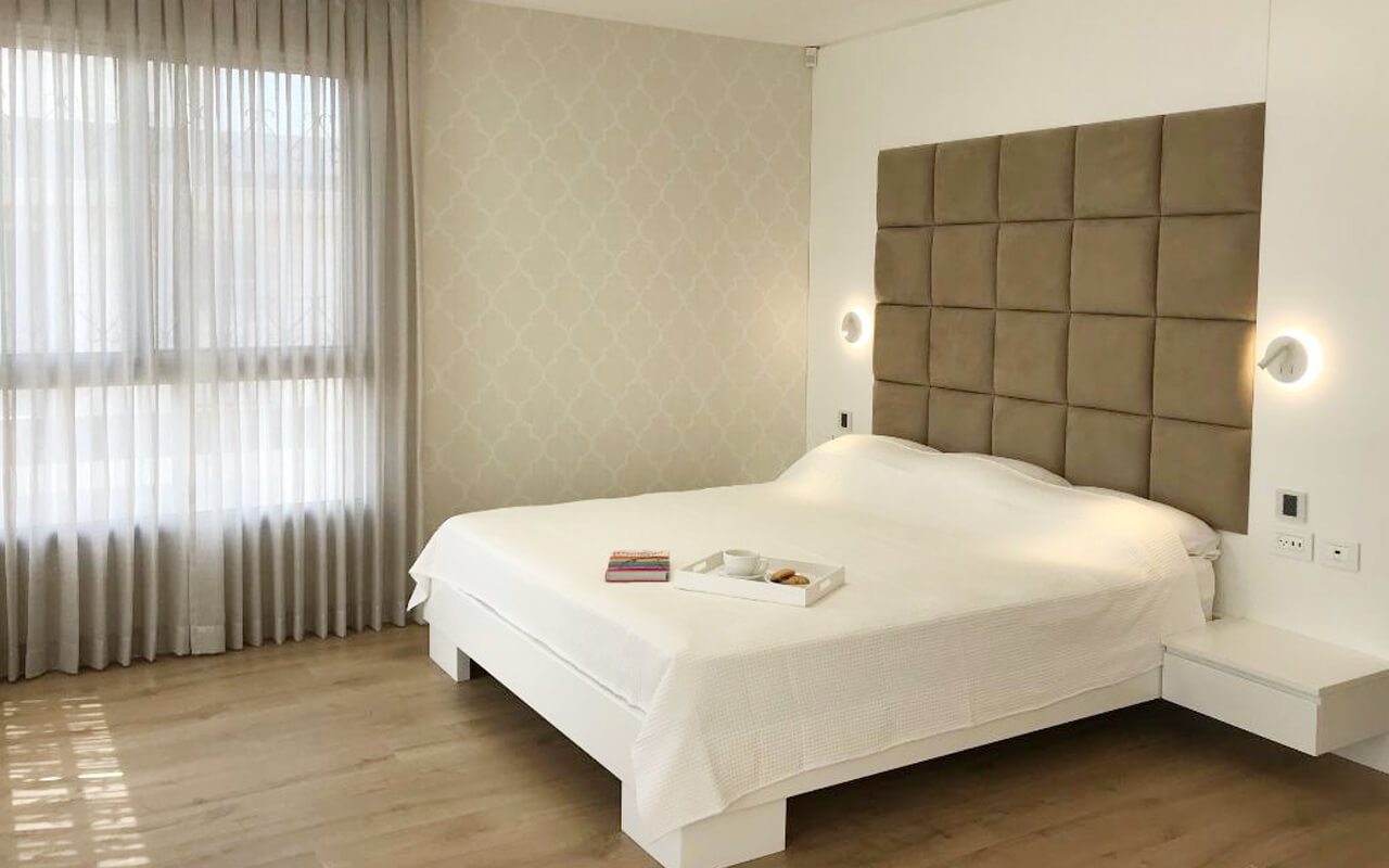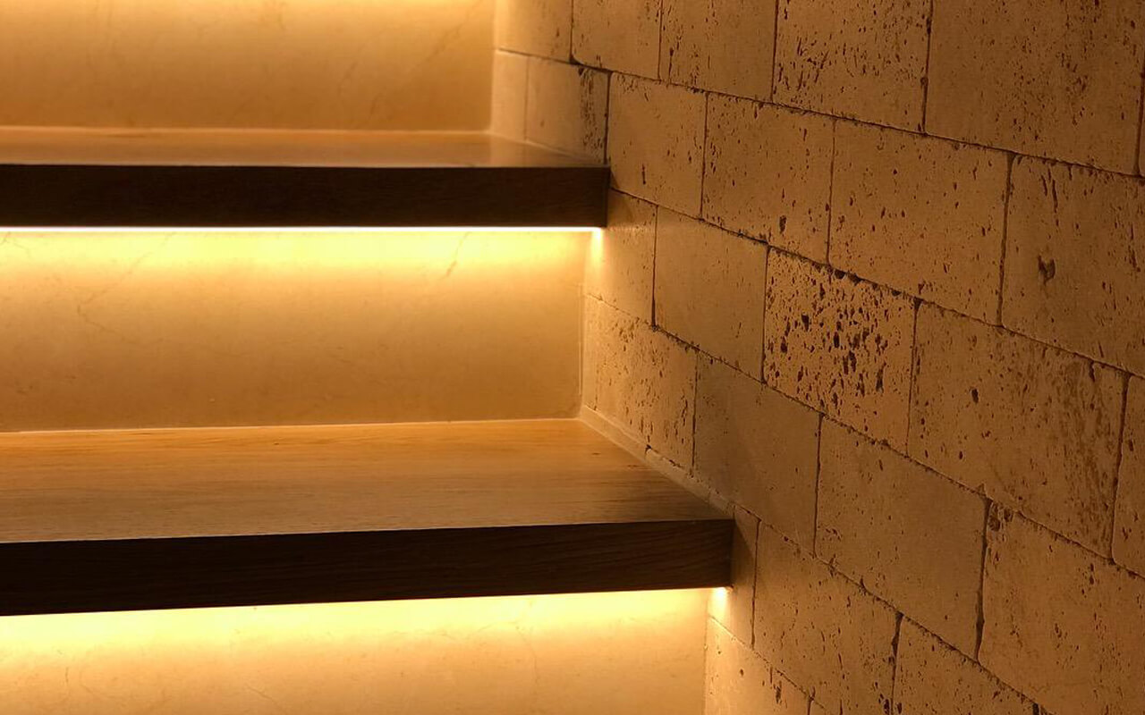 В спальных комнатах очень много скрытых мест для хранения вещей. В доме много интересного освещения, например, подсветка лестницы или лампы в спальне, или воздушные стеклянные лампы на кухне...