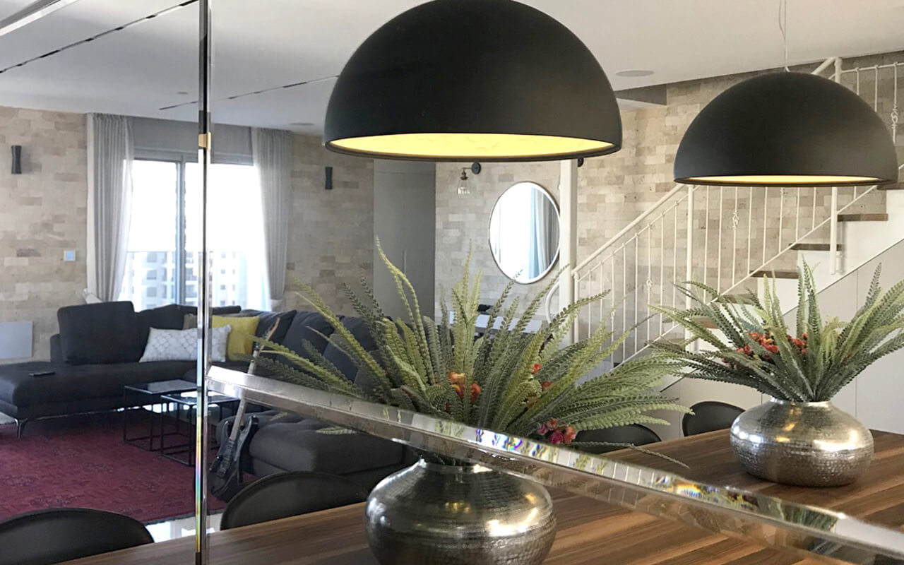 עשיתי זאת בסגנון מודרניסטי עם תווים של פרובנס, עבור משפחה שאוהבת לקבל אורחים. חילקנו את הדופלקס לשני אזורים עיקריים: אירוח ופרטי.