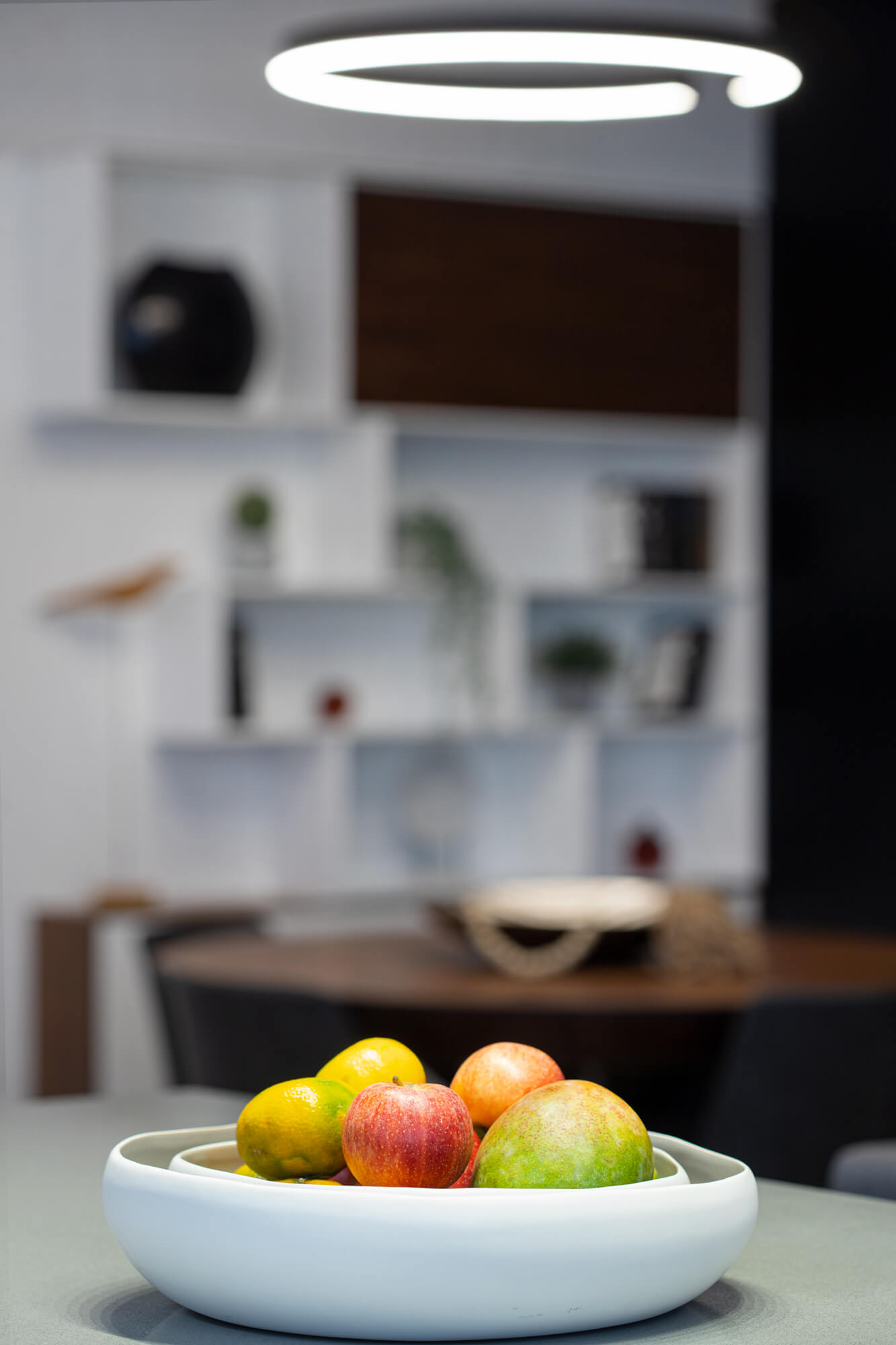 הפרויקט מציג חלל מגורים מודרני ומאוזן, המאופיין בקווים נקיים, שילוב חומרים טבעיים כמו עץ, אבן וטקסטיל רך, ותכנון פונקציונלי שמייצר זרימה הרמונית בין אזורי הסלון, המטבח ופינת האוכל. כל חלל מעוצב בקפידה תוך שימוש בגוונים ניטרליים ונגיעות צבע עדינות, תאורה טבעית ותאורה מלאכותית מדויקת, ופרטי נוי שמעניקים תחושת חמימות, אופי וסדר. השילוב בין מינימליזם לאלמנטים דקורטיביים יוצרים בית עכשווי, נעים ומזמין, שמדגיש את הקשר בין אסתטיקה לנוחות יומיומית.